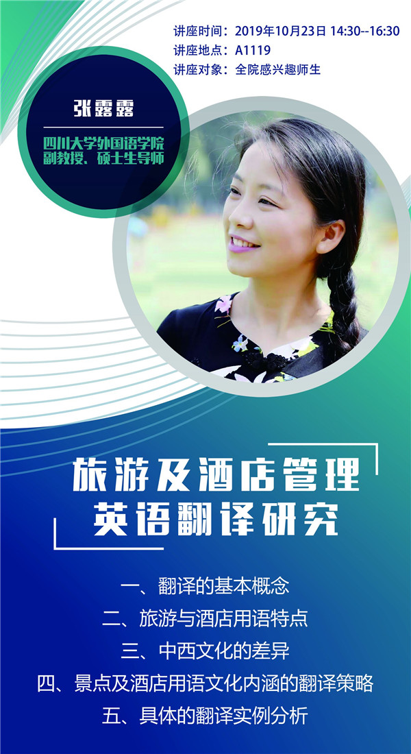 讲座对象:17商英(涉外旅游)班、17英语本3、4班(涉外酒店管理方向)、18商英(涉外旅游)班、18英本1、2、3、4班,及全校其他感兴趣的学生。