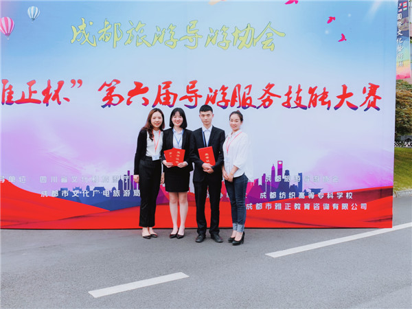2019年5月25日,由成都旅游导游协会主办,成都纺织高等专科学校承办,四川省旅行社协会、成都市旅行社协会及成都旅游学会协办的“雅正杯”第六届导游服务技能大赛在成都纺织高等专科学校举行。我院商务英语专业学生蒲姝含、旅游专业学生强航在指导教师段薇、王毓梅的带领下,代表我院参加比赛。