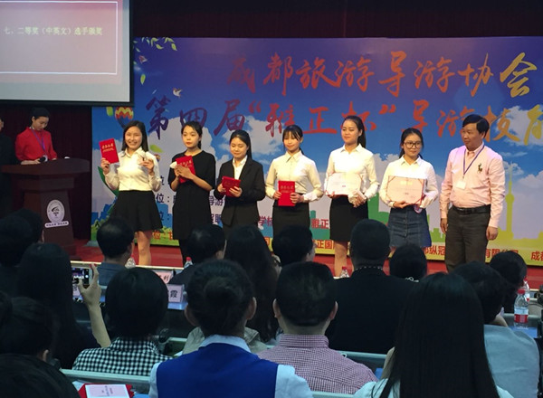 经过笔试、景点讲解、专题抽签讲解的三重PK,刘娟同学以流畅的英文表达和优秀的创新能力,获得院校类英语组二等奖。旅游管理系何萍获职业组英文讲解二等奖,苟欣楠获院校中文组二等奖,戴顺璋获院校中文组三等奖,我院获团队三等奖,廖静娴老师获优秀指导老师奖。