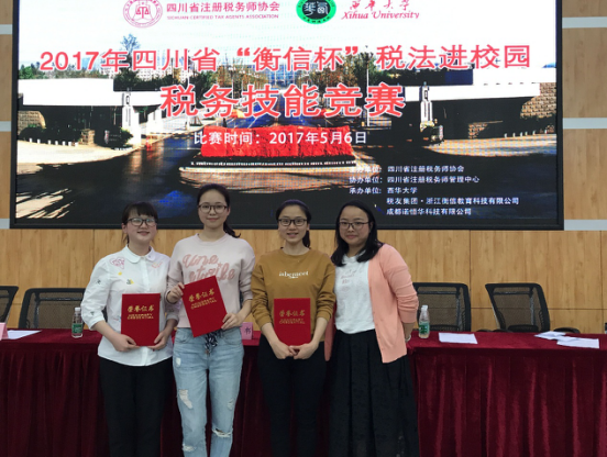 5月6日,由四川省注册税务师协会主办,西华大学、税友集团、浙江衡信教育科技有限公司和成都诺恒华科技有限公司承办的四川省“衡信杯”税务技能竞赛在西华大学举行。阚微、蔡叶梅、胡伟莉三名同学代表我院参加了此次比赛,经过层层选拔。最终,我院与20余所本科院校的代表队进入决赛。经过理论环节和实操环节,我院代表队在财管系彭三波、张杰和唐婧三位老师指导下,凭借扎实的理论基础和熟练的操作技能,取得了三等奖的佳绩。