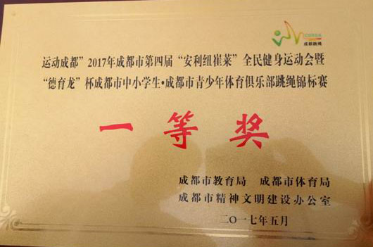 5月20日,“运动成都”成都2017年第四届“安利纽崔莱”全民健身运动暨“德育龙”杯成都市青少年体育俱乐部跳绳锦标赛在成都市海滨小学开幕。大赛由成都市教育局、成都市体育局、成都市精神文明建设办公室主办;成都市跳绳运动协会、成都市海滨小学等单位协办。该赛事吸引了包括成都体育学院、西南石油、成都大学跳绳队等60多所大、中、小学校1500多人参加。