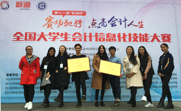 2017年11月18日,由工信部人才交流中心主办,新道科技(四川)有限公司、成都工业职业技术学院承办的第十一届“新道杯”全国大学生会计信息化技能大赛四川赛区决赛在成都工业职业技术学院举行。财务管理系两支代表队根据大赛要求精心准备,最终分别获得本科组团体一等奖和二等奖的好成绩。