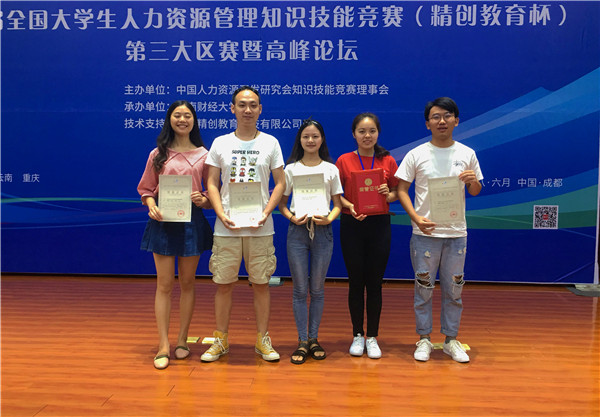 早在四月份,工商管理系就进入备赛期,通过不断的内部训练和赛区网赛,最终选拔出雷晓霞、赖孝莲、舒慧玲、刘文四位人力资源专业同学组成代表队代表我院参赛,由工商管理系人力资源管理教研室教师林竹、李黎媚指导。本次大区赛中,我院代表队的同学们以过硬的专业能力和良好的心理素质,在54所参赛高校中脱颖而出,荣获一等奖。