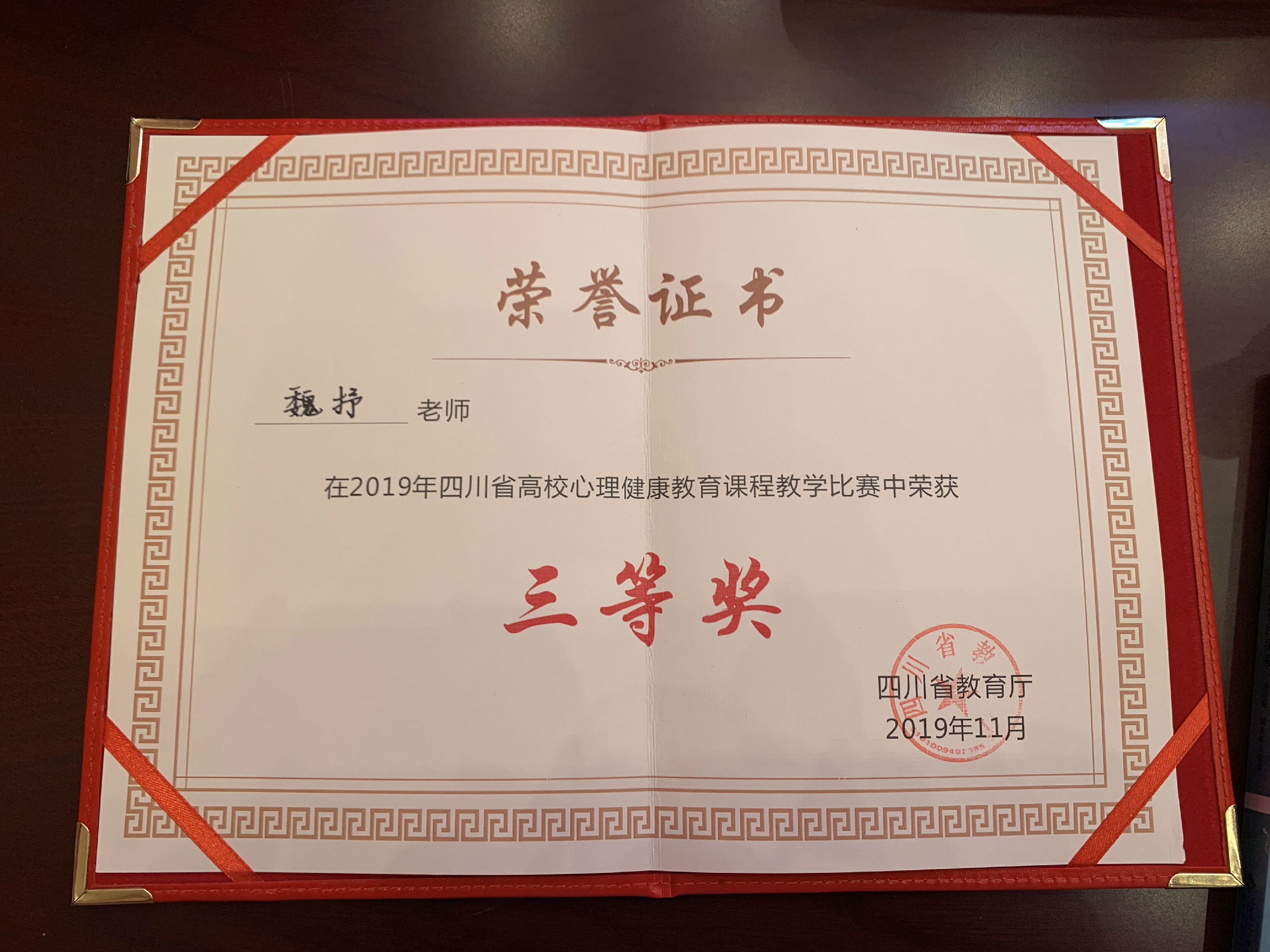 11月23日,由四川省教育厅主办、四川省心理学会高校心理健康教育专委会承办的2019年四川省高校心理健康教育课程教学比赛决赛暨四川省高校心理健康教育专委会年会,在西南石油大学图书馆学术报告厅举行。我院学工处心理健康教育中心教师魏抒获三等奖,标志我院教师首次进入四川省高校心理健康教育课程教学比赛决赛并获奖。