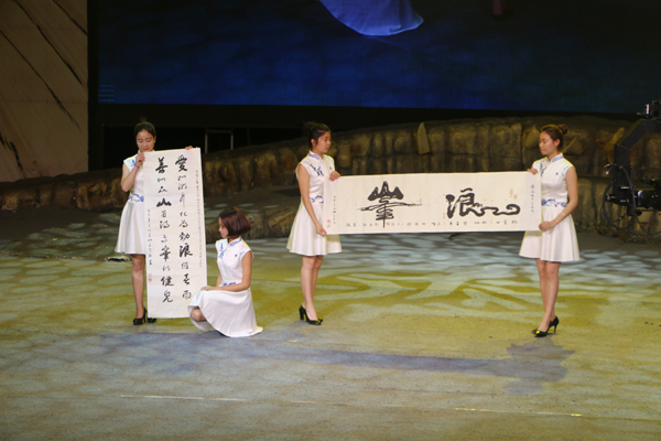 活动以尼泊尔地震时正在攀登珠穆朗玛峰的登山者肖军与其团队的境遇作为开场。地震虽无情,但共同抗震的人们却让人感动。在仁圆法师的带领下全场嘉宾起立双手合十为灾区人民诵经祈福,用最真诚的心情祝愿灾区人民度过难关。本次拍卖的义卖品共有我院在内的十余组作品参与,在场观众每一次加价便是在为灾区人民带去一份生的希望。最后,艺术设计系同学创作的其中两幅作品,由爱心人士以2500元拍卖认购,现场所有拍卖的爱心善款将全部捐赠给地震灾区。