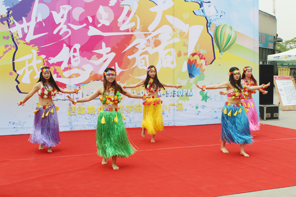 5月7日,校园里,劲爆的音乐随着夏日热浪一波波没停过,穿着草裙摇弋的美女们,有彩色羽毛头饰的男生们,穿梭在校园小广场中; 还有现场登台献唱的同学们一个接一个……今天,“世界那么大,我要去看看” 国际留学博览会,收获了人气爆棚的效果; 银杏国际学院、各个项目合作方、银杏学生助理会、学院文艺部带领银杏学子们在愉快的氛围里一同看世界,将此次国际留学展推向一波波高潮。