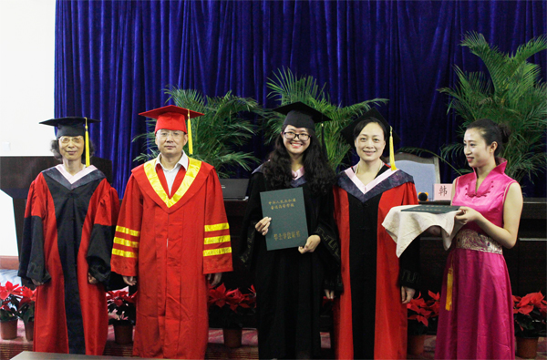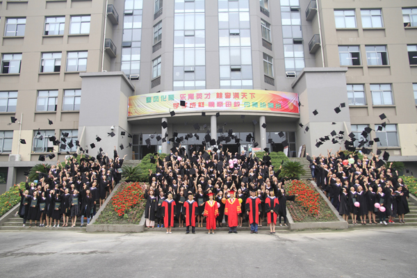 简短的授位典礼结束后,全体毕业生与校本部和学院领导一起在一教门前合影留念,同学们还将自己的学位帽高高的抛向空中,以纪念在银杏学院度过的珍贵时光。
