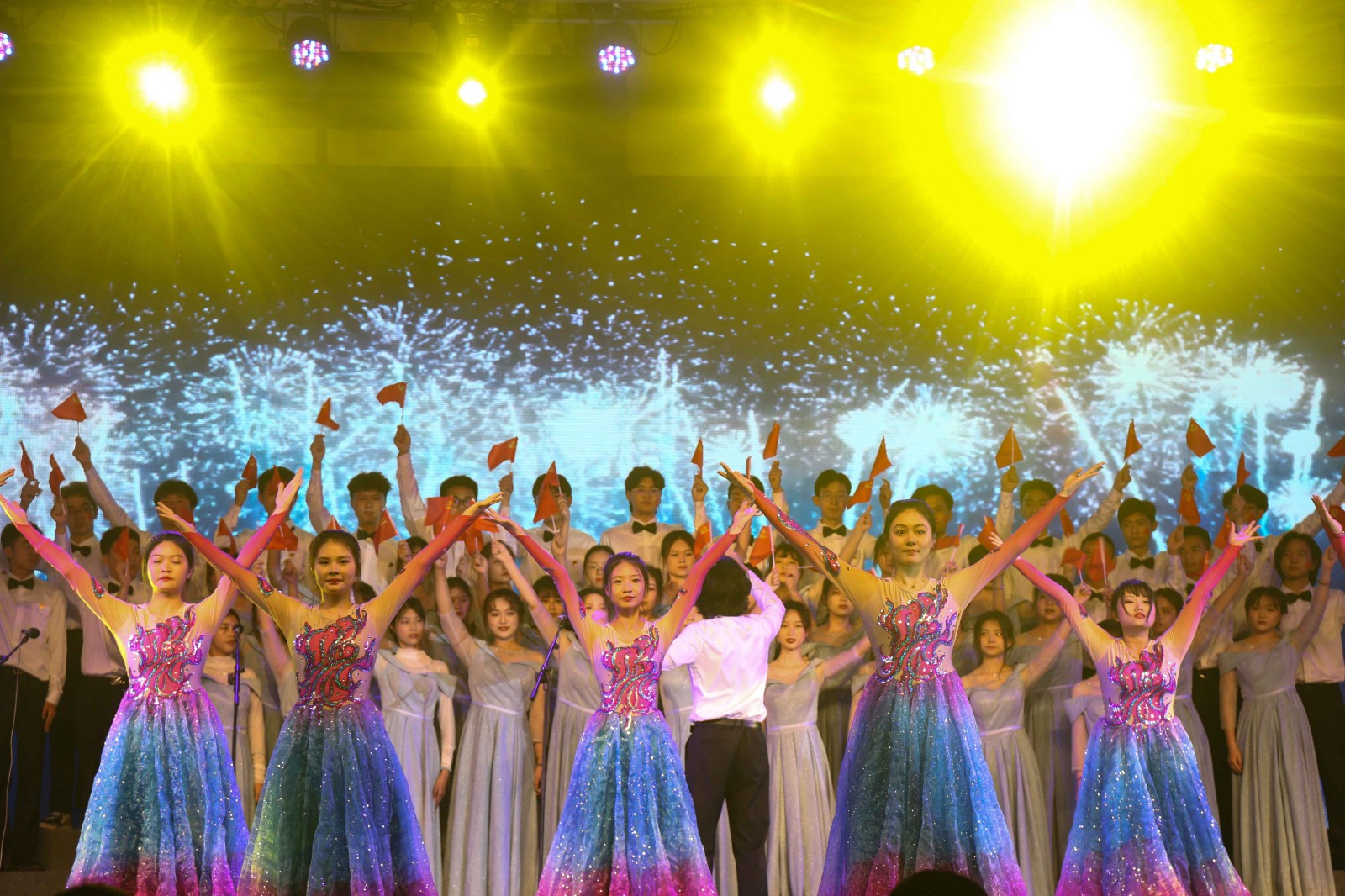 为庆祝中国共产党成立100周年,传承和发扬五四精神,5月27日晚,学院在多功能馆隆重举行“心中的歌献给党”庆祝中国共产党成立100周年合唱晚会暨五四表彰大会。学院党委书记刘吾康,院长魏昭,党委副书记、纪委书记、工会主席龚燕,党委副书记、院长助理李瑞泉,院长助理黄芳,各系部门负责人,共青团学干部、团员代表等1300名师生共同参加此次晚会。