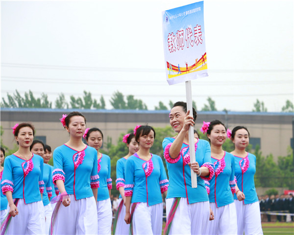 开幕式上,动感十足的啦啦操拉开了运动会帷幕,英姿飒爽的国旗护卫队踏着矫健的步伐而来,靓丽的彩旗队带着勃勃朝气闪亮登场。各系的方阵高呼响亮的口号、迈着整齐的步伐精神抖擞走过主席台。期间,各系还表演了精心编排的节目,展示各系的精神风貌,把现场气氛一次次推向高潮。教师代表队方阵入场,为同学们带来了《最炫民族风》舞蹈,博得了全场阵阵掌声。