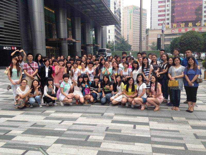 (文/图 孙雨露)2014年6月11日下午,2013级英语专业全体同学在招就处欧华国处长。外语系办公室主任李丹老师以及外语系辅导员王智力老师的带领下,前往成都富力丽思·卡尔顿酒店酒店进行酒店认知活动。本次活动受到丽思·卡尔顿酒店的总经理及人力资源管理部门同事的热情接待。活动开始,丽思·卡尔顿酒店总经理亲自接待了参加此次认知活动的同学们,并且介绍了其酒店的历史发展及酒店主题茶文化的由来及酒店的践行等等。其次,人力资源管理部门的同事带领同学们参观酒店并做了详细的特色介绍。随后,酒店人力资源部培训总监为同学们作了为时一个小时的酒店培训,同学们受益匪浅。