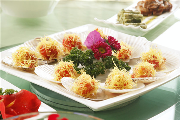 早上8:30,烹饪实训室却已是一片繁忙的景象,班级全体成员穿着整齐的工装已经开始了菜品的准备工作,热菜组、凉菜组、面点组,在杨辉老师和邓华兰老师的指导下紧张而有序地进行。此次表演的菜品用料皆是本地新鲜食材,经过复杂工艺精心烹制。如红糖锅盔,看似简单无奇,面团却经过纯手工揉制长达1小时,馅料由陈皮、红糖、花生、芝麻剁成末,揉合而成,经过专业手法成型、醒面、蒸制、小火慢煎,一盘香甜美味的红糖锅盔才正式出炉;比如金丝脆皮元贝,外表的金丝是用土豆片切成成薄纸一样的片,再切成丝,考验着同学们的刀工,经过文火、高火的轮换炸制成金丝,单金丝的制作耗时需一个半小时。