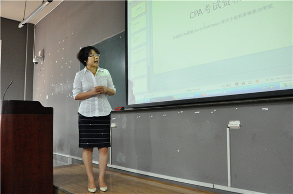 5月4日刘荣女士走进课堂,在1320教室为15级会计实验班和财务管理实验班的学生带来了一节案例翔实的《中级财务会计》课程。在课堂教学中,她用实践中的真实案例为学生们讲解了在现实财务工作中会计处理的基本流程,并根据自身在美国10余年审计和会计工作的经历,告诉学生们作为会计专业的学子必须要掌握的工作技能。课堂上,学生与老师积极互动,形成良好的教学氛围,课后学生纷纷表示受益匪浅。