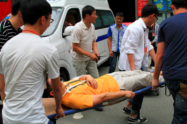 本次演练还有救护项目,模拟有学生受伤,将受伤学生用担架抬出宿舍,并对其进行心肺复苏、伤口包扎等环节,让整个演练过程更加真实。此次演练,未发生因踩踏、拥堵等而引发的安全事故,疏散演练活动取得圆满成功。