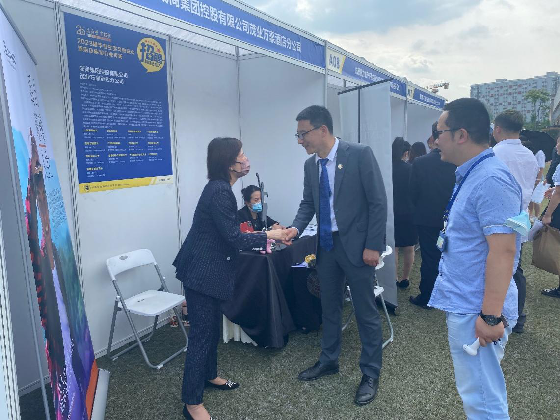 为给2023届毕业生提供实习机会,扩大实习路径,提高毕业生的就业质量,5月11日,成都银杏酒店管理学院举行2023届毕业生实习双选会(酒店、旅游行业专场)。包含成都银杏金阁餐饮股份有限公司、和美酒店管理(上海)有限公司、成都银城置业有限公司华尔道夫酒店分公司、四川天府国际会展有限公司、成都天府华侨城实业发展有限公司欢乐谷旅游分公司等知名企业在内的60家酒店、旅游行业的企事业单位参会,提供酒店运营、旅游顾问、乐园运营、人力资源、前厅部、餐饮部、管理培训生等240个岗位类别,共计1350个岗位需求。学校酒店管理系、旅游管理系900余名2023届毕业生参加实习双选会。