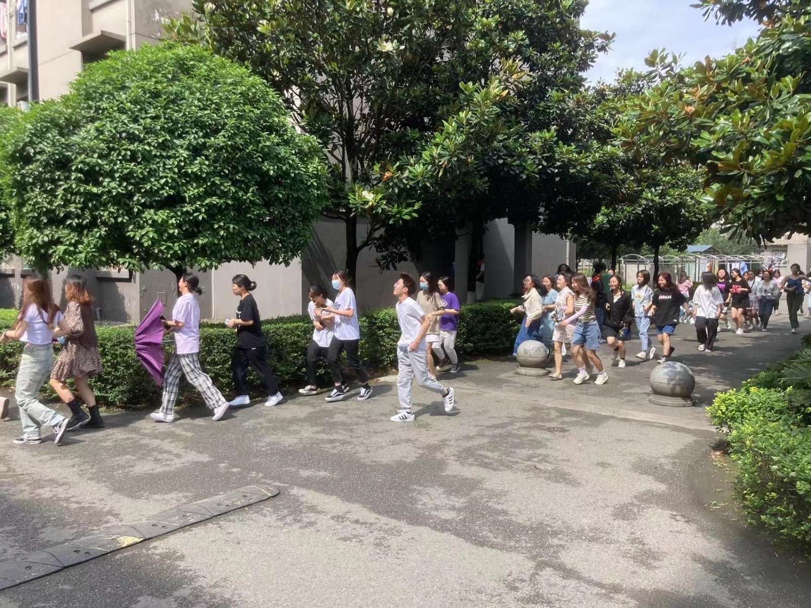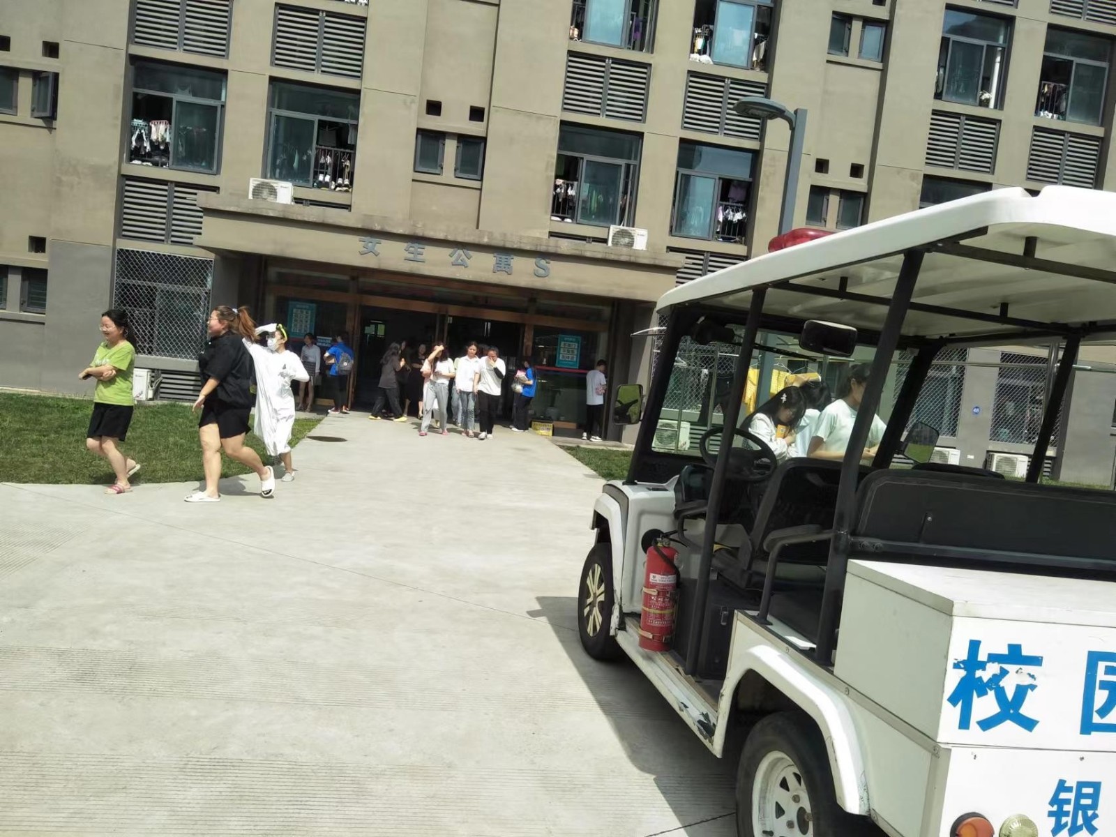 (警报响起学生正在紧急疏散)