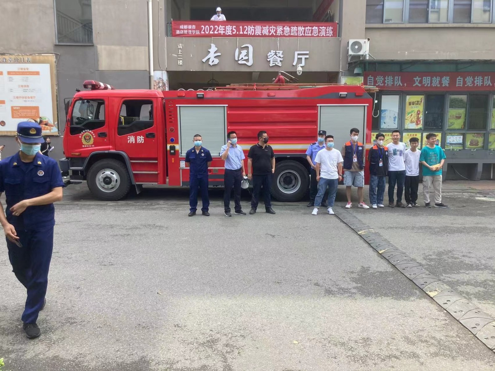为增强全体师生员工的防震避险意识和自救互救能力,确保应对各类突发自然灾害时能做到紧张有序、安全迅速地撤离疏散,我校成都校区、宜宾校区结合当前疫情防控实际,联动辖区消防部门、派出所、医院等单位分别于5月11日、12日组织两个校区学生公寓近万名学生开展了2022年度“5.12”防震减灾紧急疏散演练。学校党委副书记、校长助理李瑞泉和宜宾校区综合办公室主任黄磊分别担任成都校区、宜宾校区演练总指挥。