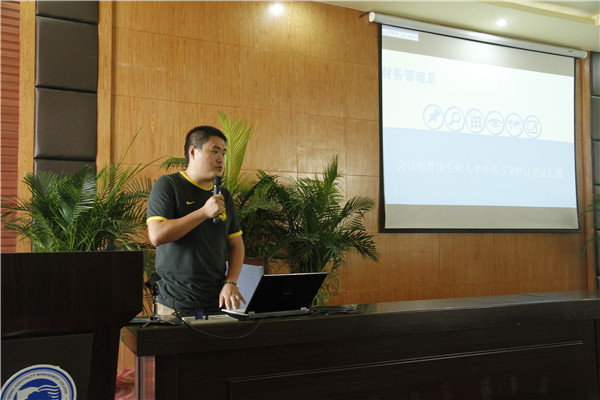 随后,休闲运动管理系率先出场,正式拉开了本次比赛帷幕。全院八个系各派一名教师代表就符合学院顶层设计要求、国内外同类院校或同专业培养方案特点、地方经济与产业发展依据、培养目标及其特点、培养要求及其特点、课程体系结构及特色、实践教学及特色、创新教育、校企合作参与培养方案制定的情况、突出特点的培养模式和专业人才培养方案落实的保障性措施等11个方面进行了论证报告,从他们的报告中可以看出各系都在学院人才培养顶层设计的办学理念指导下,进行了一系列的调研和探索,虽有不成熟和还需完善的地方,但都各有特色,艺术设计系、外语系、电子商务与信息管理系和工商管理系还很有亮点,得到了评委的好评,比赛过程中不时迎来阵阵掌声。