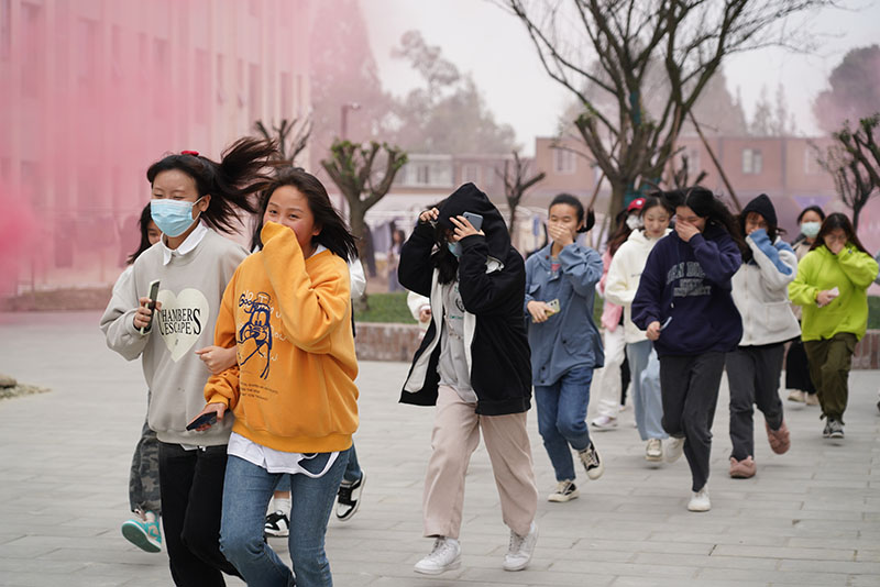 此次消防演练分别在双校区学生宿舍楼前开展。13时消防警报响起,银杏学生根据各楼层引导员统一指挥,按照既定路线撤离。撤离期间,学生弯腰低头用衣袖遮挡口鼻,互相照顾,演练过程井然有序。演练结束后,保卫处对此次消防逃生疏散演练进行了专业点评,对参演人员逃生疏散时表现出的镇定自若给予了充分肯定。