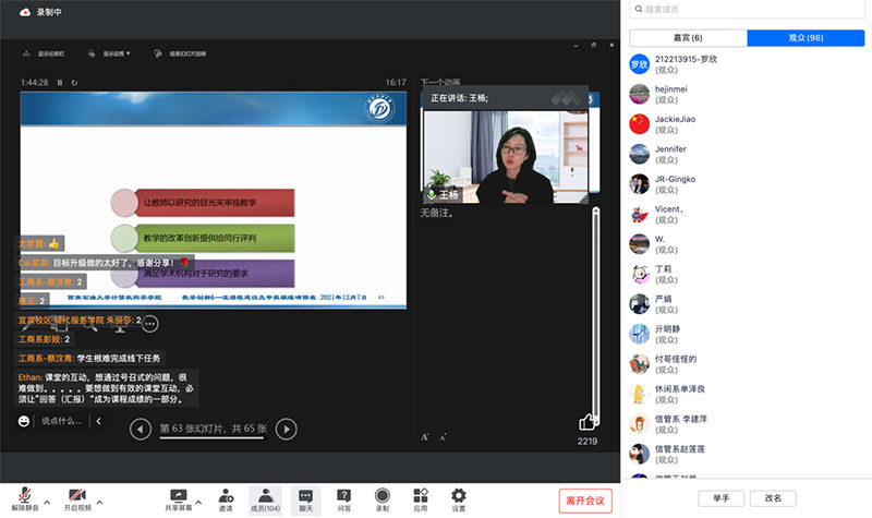 为引导教师落实立德树人根本任务、强化课程思政,创新教学方法,改进教学评价,推进现代教育技术与传统课堂的深度融合,以赛促教,以赛促学,提升教师教学创新能力,实现教师“以教为中心”向“以学生为中心”转变,不断提升人才培养质量。11月30日和12月3日,我校教务处邀请西华大学副教授唐丹老师、成都职业技术学院教授罗晓彤老师、西南石油大学教授王杨老师在线作培训指导,教务处及相关人员、参赛教师及其他教师共计700余人次参加了培训。