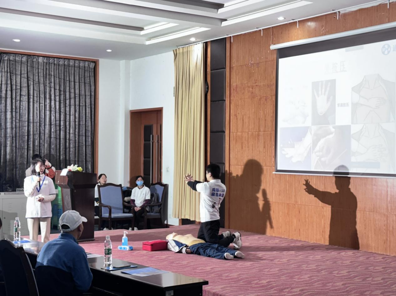 此次培训分为理论教学和实际操作两部分,内容包含急救基本知识、心肺复苏、AED使用说明和应急演练。理论教学方面,我校邀请三六三医院急诊科副主任护师、成都市120培训中心BLS导师---薛丹及其团队,就心肺复苏相关知识、AED自动体外除颤仪具体使用方式等内容进行科普讲解。薛丹团队对AED自动体外除颤仪规范操作等进行现场演示,并通过一对一、手把手的操作指导,帮助参会教职工在练习过程中掌握技能。