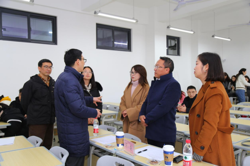 2月23日,校级复赛现场评审在三教二楼举行。校长魏昭亲临比赛现场,关心等候室老师的准备情况,观摩教师的汇报现场,并与专家评委进行亲切交流。