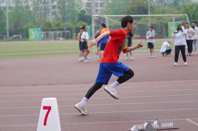 100m短跑是速度与爆发力的比拼。跑道上,银杏er们蓄势待发,严阵以待。随着一声枪响,运动员们风驰电掣,冲向终点!