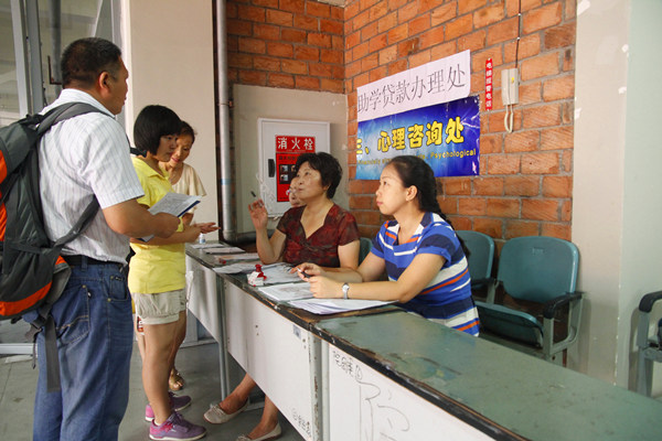 志愿服务,营造宾至如归的氛围。为了凸显银杏人专业礼仪的办学特色,学院八大系争相展现接待风格。其中艺术设计系的“祝福树”、漫画墙,传递出学长学姐对新生的寄语;酒店管理系的行李编号、电脑办公,体现出酒店专业的贴心服务;财务管理系的全体女辅导员的一身旗袍,彰显了银杏人的青春活力;工商管理系提倡的“让新生独立,让家长放心休息”的做法,使新生一走进校园就能感受到独立成长的快乐;旅游管理系设置的自主打印项目,提高了新生的报到效率;休闲运动系提供的微信平台,让新生在第一时间就建立起了联系网络;电子商务系绘制的学院地图,有效地指导了新生快速地熟悉了校园;外语系成立的新闻小组,真实地记录了新生报到的点点滴滴;还有学生工作处设置的助学贷款办理点,及时地为贫困生开启了绿色通道。总之,银杏学院的全体师生,希望以专业的态度、真诚的服务,带给新生如家般的温暖。