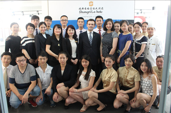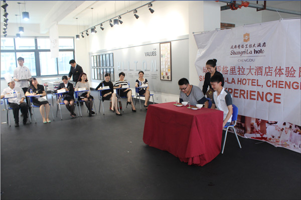 6月17日下午,成都香格里拉大酒店与我院共同举办的“香格里拉酒店体验日”活动在我院博物馆成功举行,活动的内容是由学生扮演酒店各部门工作人员进行情景模拟,目的是使学生对酒店的工作内容有一个大致的了解。