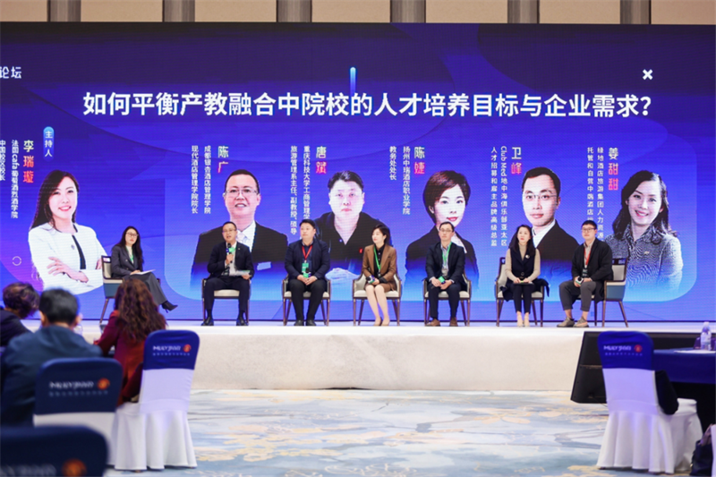 在主旨发言中,陈广阐述了我校酒店管理专业自2021年获批国家级一流本科专业建设点以来,立足旅游酒店行业对人才的需求办学,将世界先进的酒店管理学院的办学理念和人才培养模式与中国国情结合,秉承“服务养成、知行相济”的校训,探索形成了以酒店及泛服务业应用型人才为目标,以工学交替的课程体系和OBE的教学方法为路径,以贴近业界标准的应用型教材为依托,以双师型师资队伍为保证,推行养成式教育的的银杏酒店人才培养模式体系,得到了与会嘉宾的充分认可。