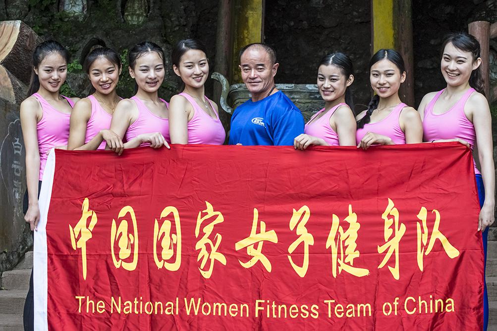 张德明副教授与国家女子健身队运动员合影