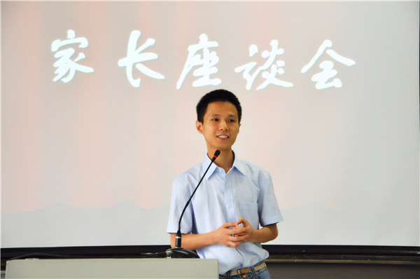 张先梅老师首先介绍了财务管理系2015年招生情况、辅导员分配等情况。罗杰主任就院系情况、学生学习与就业、人才培养、家长支持等几个关键点作了详细介绍,他希望家长应该多与老师沟通,也希望家长在关心孩子日常生活学习的同时,进一步督促孩子们注重提高自身的综合能力,继续为孩子们在成长道路上引路。财管系老生代表周鹏钦同学上台发言,他总结了自己的大学生活,谈到自己的大学收获颇多,感谢各位老师的帮助,并对新生送上祝福。最后,张老师总结到“成就我们的学生需要学生的投入、老师的努力,更离不开家长支持”。