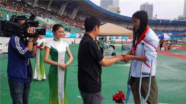 9月17日,喜讯连连,我院财务管理系陈忆梅同学继摘得残运会T42级100米决赛、女子T42级跳远决赛两块金牌后,再接再厉,获得残运会女子五项全能银牌,2金1银的成绩让这个在风中奔跑的女孩为自己、也为学院赢得了无上的荣誉。
