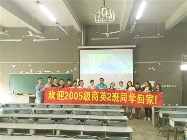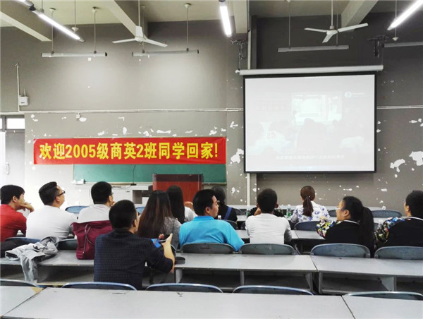 在已是面貌一新的校园里,05级的校友们观看了学院的宣传片,随着宣传片的播放,同学们仿佛置身10年前、9年前、8年前、7年前,感受着自己一天天的成长以及母校的瞬息万变。05级商英2班班长代表全班同学对学院的快速发展表示祝贺,对母校精心的培养表示感谢。随后,班长用PPT的形式带领大家回忆了4年的成长,同学们无不回忆起自己当年的青涩与稚嫩和时间都去哪儿了的感慨;最后,到场的校友们轮流上台讲述了自己的近况,当年的莘莘学子而今都已是而立之年,无论家庭和事业都有所收获。同学们纷纷表示,能够取得今天的成就,是与学院的培养分不开的,一定会加倍努力工作,与学院一同发展,为母校争光。
