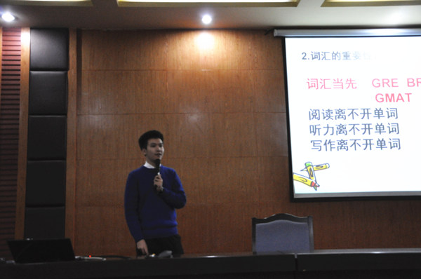 讲座伊始,文锐老师以其亲身经历,为在场同学介绍了包括谐音记单词、词根词缀记单词等单词记忆法,文老师还全面、系统的与同学们分享了四六级备考方法及复习策略,并向全体同学介绍了开展自主英语学习的相关软件,本次讲座在全体同学的掌声中圆满结束。