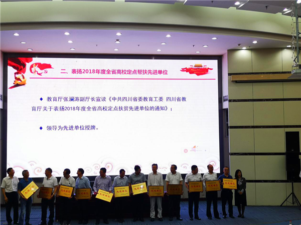 会议表扬了2018年度全省高校定点扶贫先进单位,书面印发了27所高校定点帮扶工作经验,并对受表扬的单位进行了现场授牌。我院2018年扶贫工作考核评分靠前,在会上受到表彰。