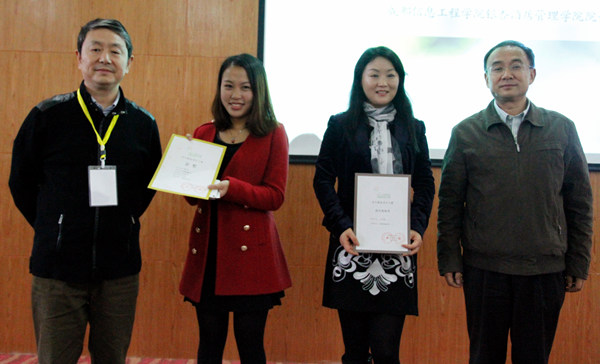在颁奖仪式上,大赛执行单位成都信息工程学院银杏酒店管理学院院长韩勇、大赛秘书处负责人万萱代表大赛负责单位在会上致辞。2014成都创意设计周•青年创意设计大赛经过了近半年的准备和努力,在成都创意设计周组委会的有力领导下,在各参展院校的大力支持下,大赛的组展、评审与展出工作顺利完成,并初步达到预期效果。在本次承办工作中,大赛执行单位成都信息工程学院银杏酒店管理学院作出了巨大努力,全院上下高度重视,由学院院长挂帅成立了工作领导小组,精心组织,周密策划,举全院之力参与到大赛中,圆满完成了所承担的各项任务。大赛秘书处负责人万萱女士在致辞中表示,本次大赛作品具有以下四个特点:一是作品内容丰富;二是设计理念前沿;三是设计水平较高;四是创新型及完成度较高。本次大赛的所有参展作品均以二维的版面与三维实体模型呈现,充分体现出学生所学知识的系统性、动手能力、完成设计的精深度以及设计作品的专业化等特征。通过这次大赛与展览,收到了良好的社会效应,实现了大赛“促进高等院校与本地企业的交流与协作,推动创意设计产业发展,逐年打造具有高水平、专业性、学术性、面向所有艺术设计教育界的更大规模的赛事,形成在国内外有影响的中国设计教育与创新事业的战略高地”的宗旨。
