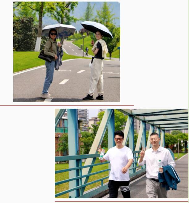双校区教职工分批出发,沿途既有漫步赏景的闲适,也有骑行逐风的激情,欢声笑语回荡在绿意盎然的道路上。