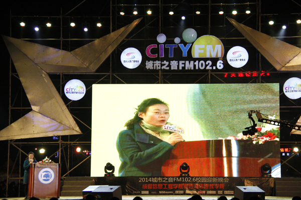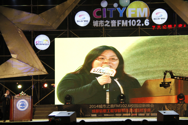 2014年11月12日晚, 成都信息工程学院银杏酒店管理学院联合城市之音FM102.6主办的2014城市之音校园迎新巡回晚会在本院体育场举行。银杏学院迎新晚会是一年一度学院欢迎新同学的仪式,也是全校师生精心准备和翘首企盼的盛典。