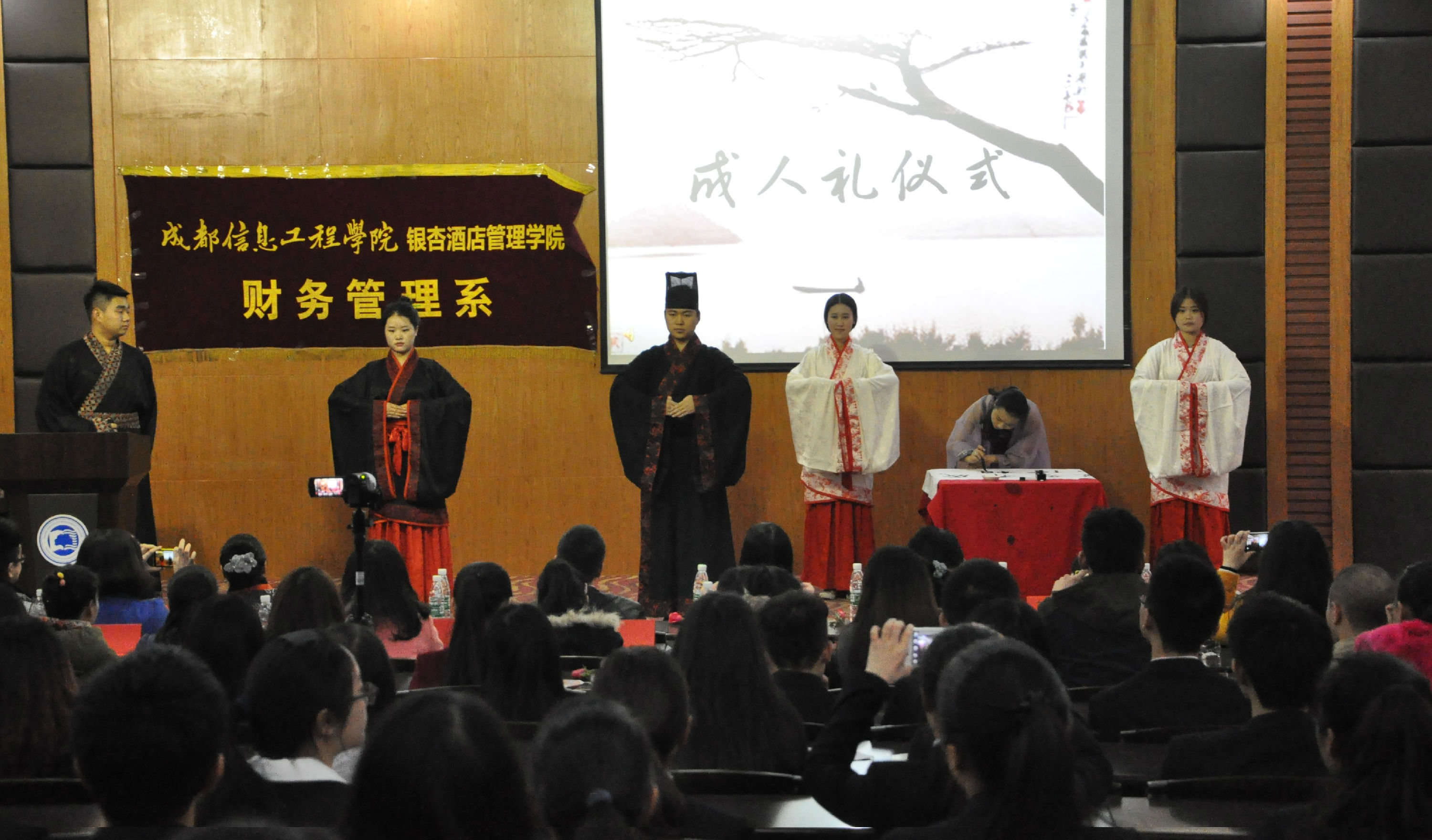 2014年11月25日,在1122学术报告厅,我院财务管理系举办了一场“十八而志,青春万岁”的成人礼活动。红光镇党委副书记郑立新、文化办公室副主任吴珂丹,我院党总支副书记景蜀萍、学工处处长周敏、学工处副处长(院团委书记)李瑞泉、教务处副处长席黎丽等嘉宾出席了此次活动。