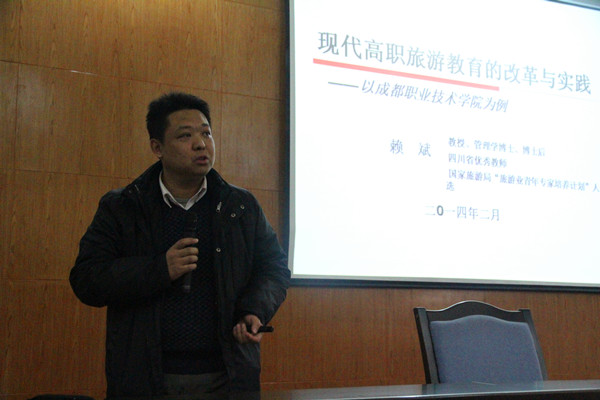 [本网讯](图/新闻中心 文/教务处)2月26日下午,成都职业技术学院旅游分院党总支书记,院长赖斌教授在我院学术报告厅,为全院教职员工进行了一场题为“现代高职旅游教育的改革与实践”的学术讲座。