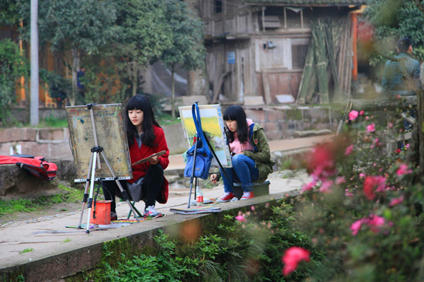 雅安上里古镇被许多院校视为写生首选,该地无论交通、安全、配套及风景等都非常适合色彩课程。
