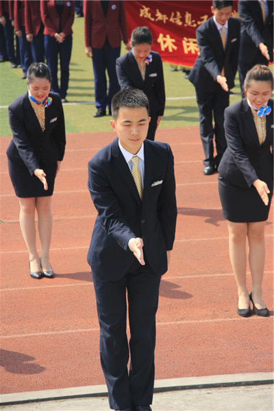 礼仪操,是我院特有的比赛项目,它将体育精神和学院的专业特色融为一体,体现了青年学子勃勃朝气和优雅的气质。4月15日下午,我院举行了第四届礼仪操比赛。各系经过经心的排练,以最好的姿态参加了比赛。休闲运动系和学生工作处的老师们担任了本次比赛的评委。经过各系激烈的角逐,酒店管理系蝉联第一名,电子商务与信息管理系和休闲运动管理系分别荣获第二名和第三名。