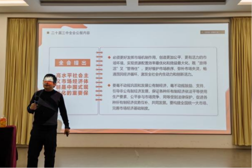 2024年12月17日晚,学校马克思主义学院副教授熊劼老师开展以“深入学习贯彻党的二十届三中全会精神”为主题开展讲授,深入浅出地解读全会决策意义与公报要点,同学们沉浸其中,领会到国家发展战略布局深意,纷纷许下将全会精神融入日常学习生活、为中国式现代化添力的壮志。