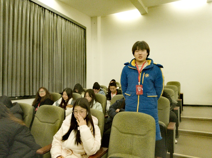 系列讲座的尾声,外国语学院周静同学代表全国红脉川承志愿宣讲团奏响红色乐章。在2024年12月20日晚,遵义会议的光辉历程、重大意义、核心内涵与时代启示一一呈现,同学们在历史回溯中汲取力量,立志传承遵义会议精神,内化于心、外化于行,勇挑时代重担。