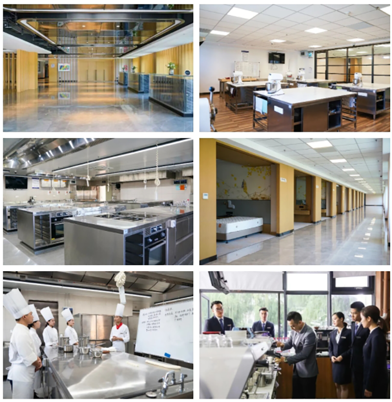 与全球最前沿的酒店行业教育理念接轨,我校宜宾校区打造了产教深度融合实践教学区,各类先进实验室、实训场所30余个;开设三大烹饪类专业,且在酒店管理相关专业中也加入烹饪相关课程,帮助学生拓展泛服务业岗位技能。除烹饪教育硬件设施投入及培养学生外,我校也致力于打造有竞争力的教师队伍,通过学术研究、以赛促教、教育培训等方式,充分发挥教师队伍对人才培养的专业引领作用。