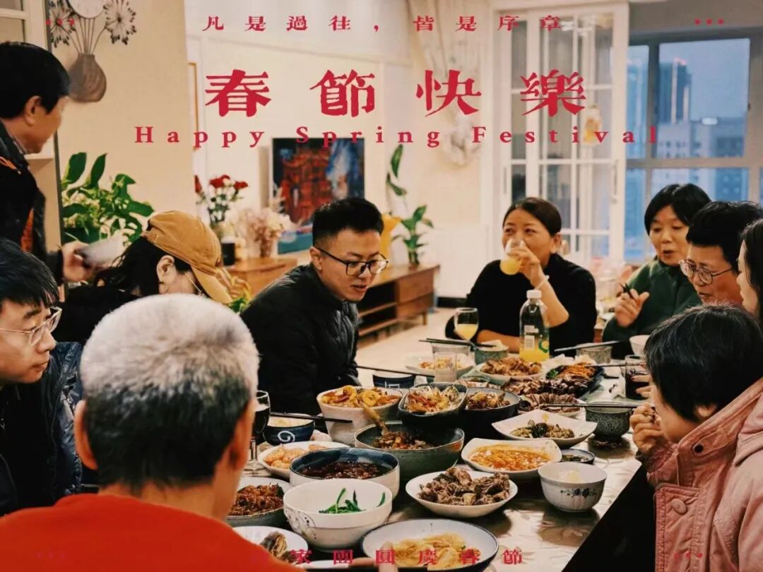 新年的我们HAPPYNEWYEAR团团圆圆年夜饭幸福一年又一年一道道别出心裁的菜肴代表着满满...